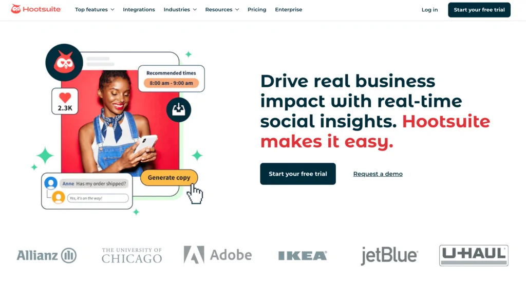 Hootsuite | Post scheduling, AI Content creation, advanced analytics, custom heatmap for best posting times | $99 per month (Professional) |