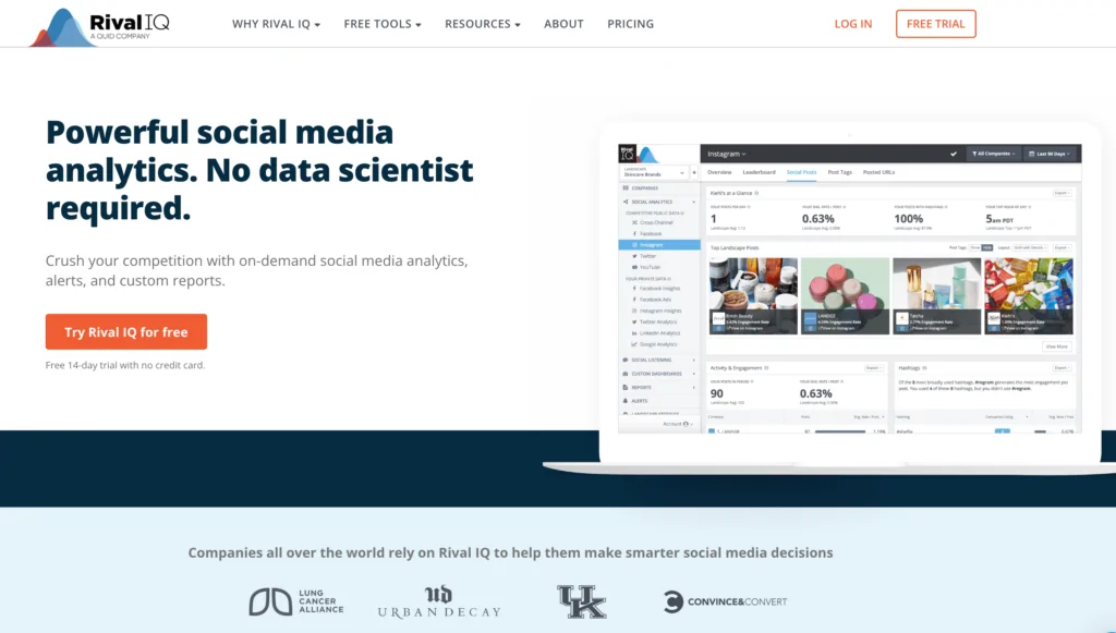 Rival IQ is an analytics tool specializing in competitive benchmarking and social media metrics.