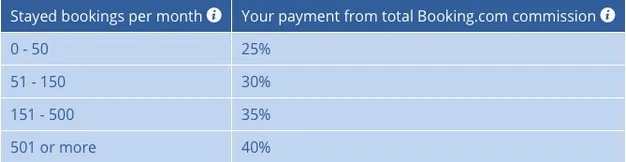 This percentage can fluctuate based on the number of “stayed bookings” you secure in a month, however it will never drop below 25%. “Stayed bookings” refer to reservations that have been completed and confirmed by the partner.