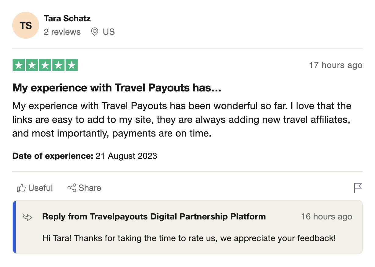 Their automatic payment system has made sure that I get the payments on time from all these campaigns they have, which saves a lot of time on my end. Whenever I’ve needed to ask something, I’ve received a professional reply quickly. If you are in the travel business, I recommend partnering with Affiliatenetworkhub . A+ service, thank you!